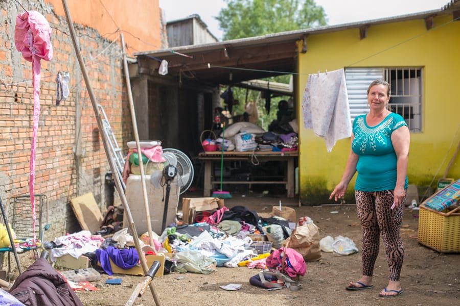 Cátia Araújo em sua casa, após a água baixar | Foto: Caroline Ferraz/Sul21
