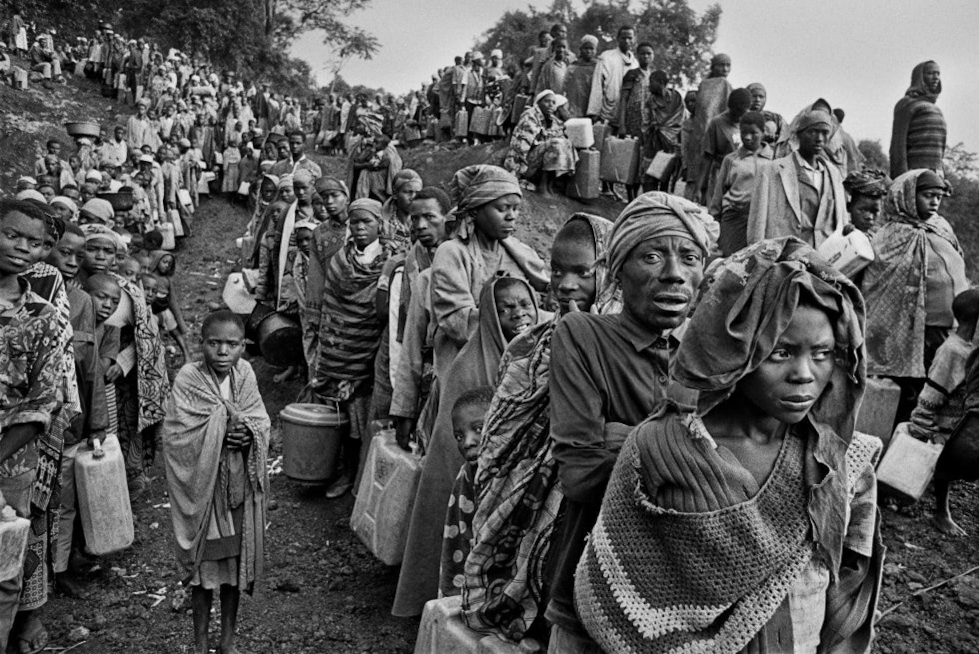 Refugiados ruandeses no acampamento de Kibumba, em Goma, 1994. Reprodução: Getty Images.