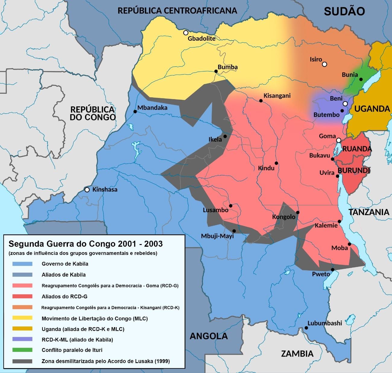 Marcado por ser um conflito predominantemente irregular, a Segunda Guerra do Congo produziu profundos estigmas na região. Financiando e apoiando militarmente grupos rebeldes no leste, Uganda e Ruanda passaram a complexificar o controle da extração de recursos, mantido e desenvolvido desde a queda de Mobutu. Em 1999, com a assinatura do Acordo de cessar fogo de Lusaka, que estabelecia medidas irreais para o desengajamento, a guerra ficou estagnada, fazendo os grupos rebeldes se alimentarem dos lucros da extração, cujos resultados não deixavam de chegar aos países centrais da cadeia imperialista.