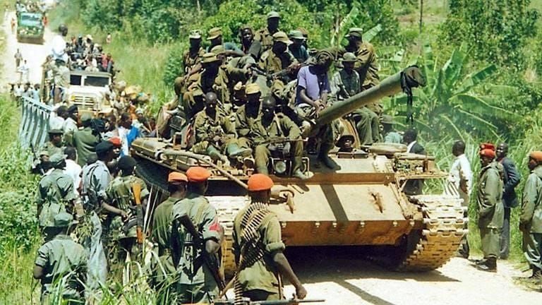 Tropas ugandesas em retirada da RDC em 2003. Reprodução: Getty Images.