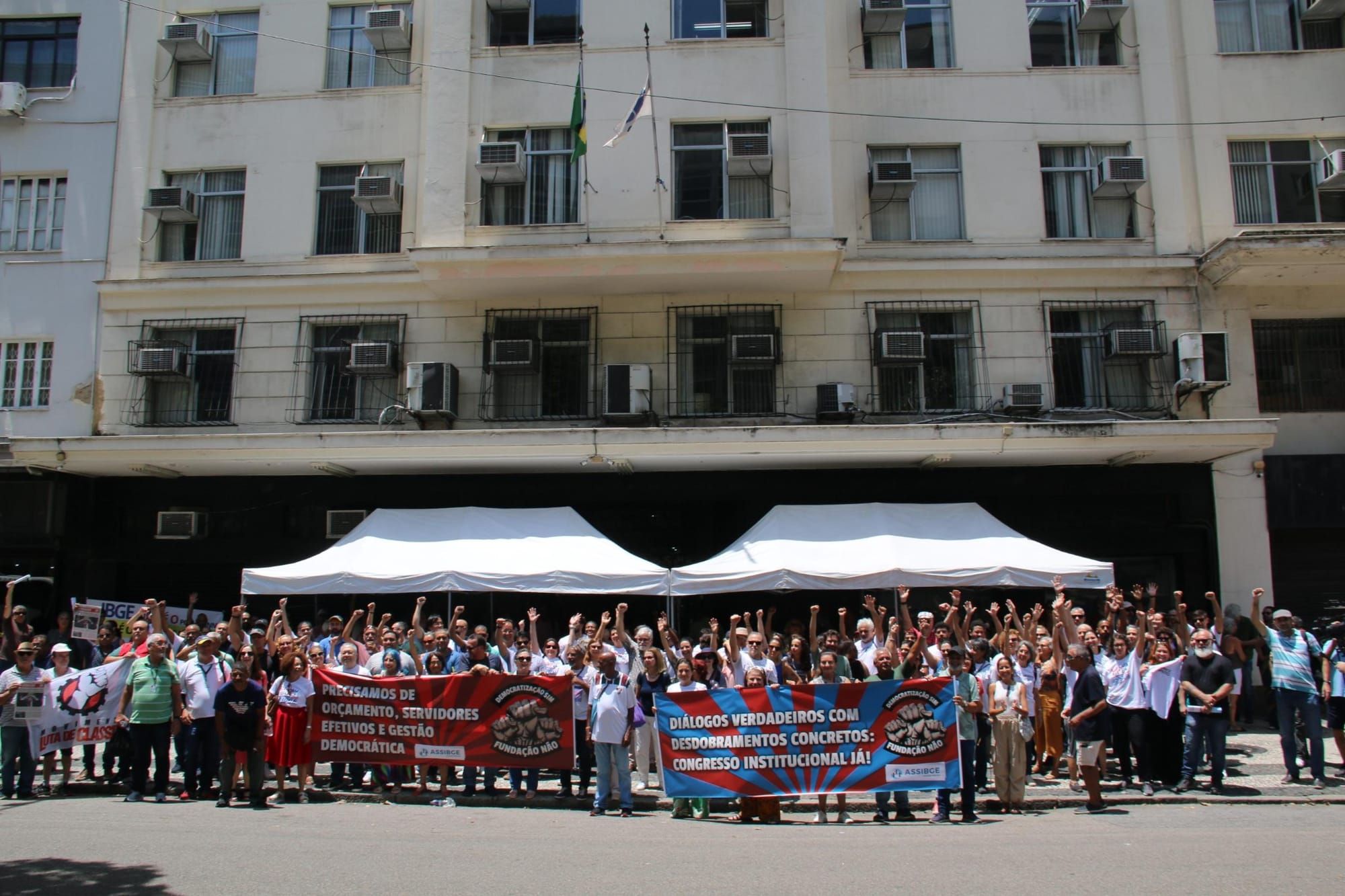 Manifestação dos trabalhadores do IBGE no dia 29 de janeiro de 2025, no Rio de Janeiro - Reprodução/Foto: Rayana Bartholo/ASSIBGE-SN