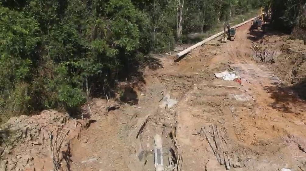 Registro das obras de duplicação do mineroduto da Norsk Hydro, em setembro de 2024. Reprodução/Foto: Movimento IRQ.