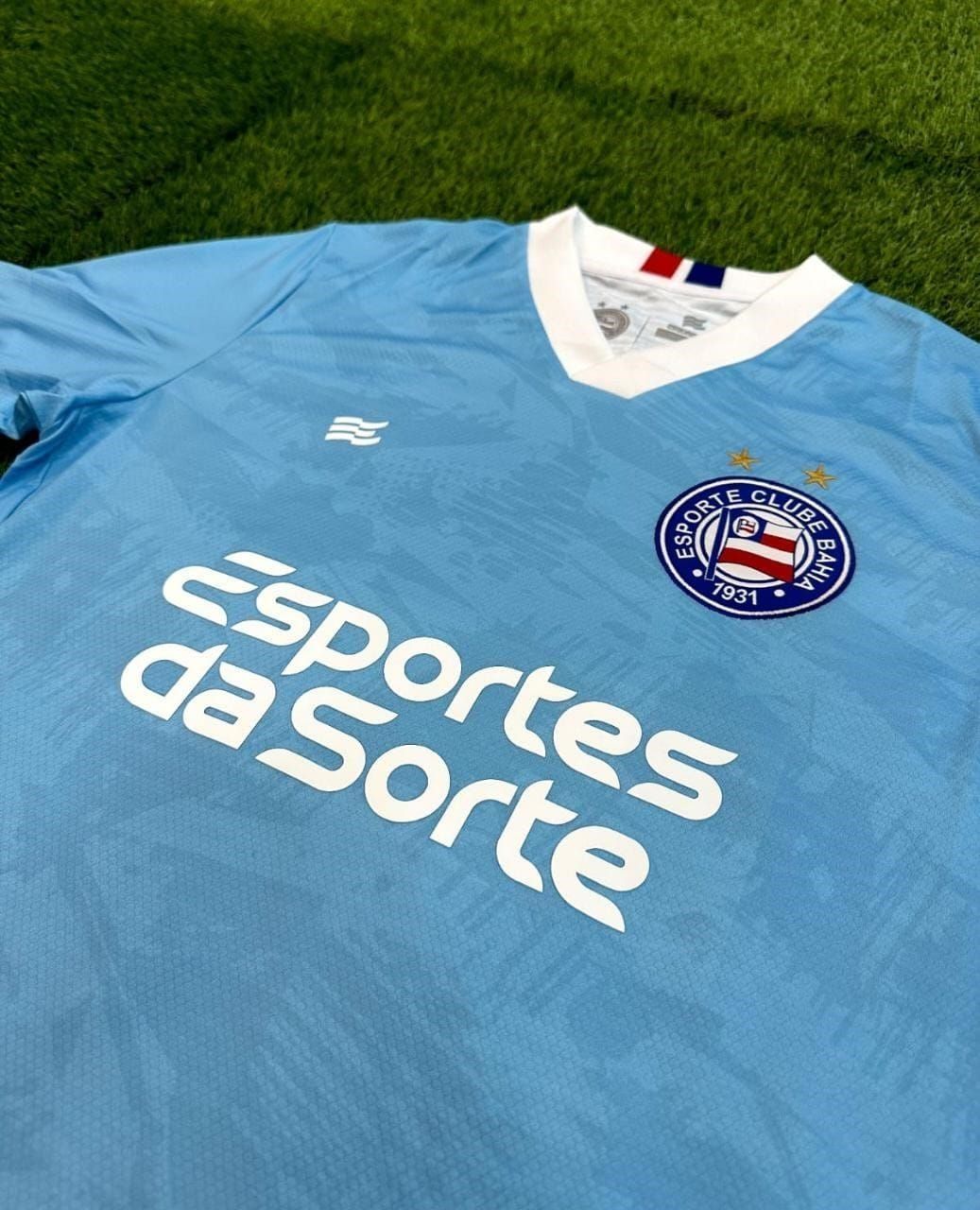 Camisa do Bahia com patrocínio em destaque da Esportes da Sorte. Foto: Reprodução: Esporte Clube Bahia.