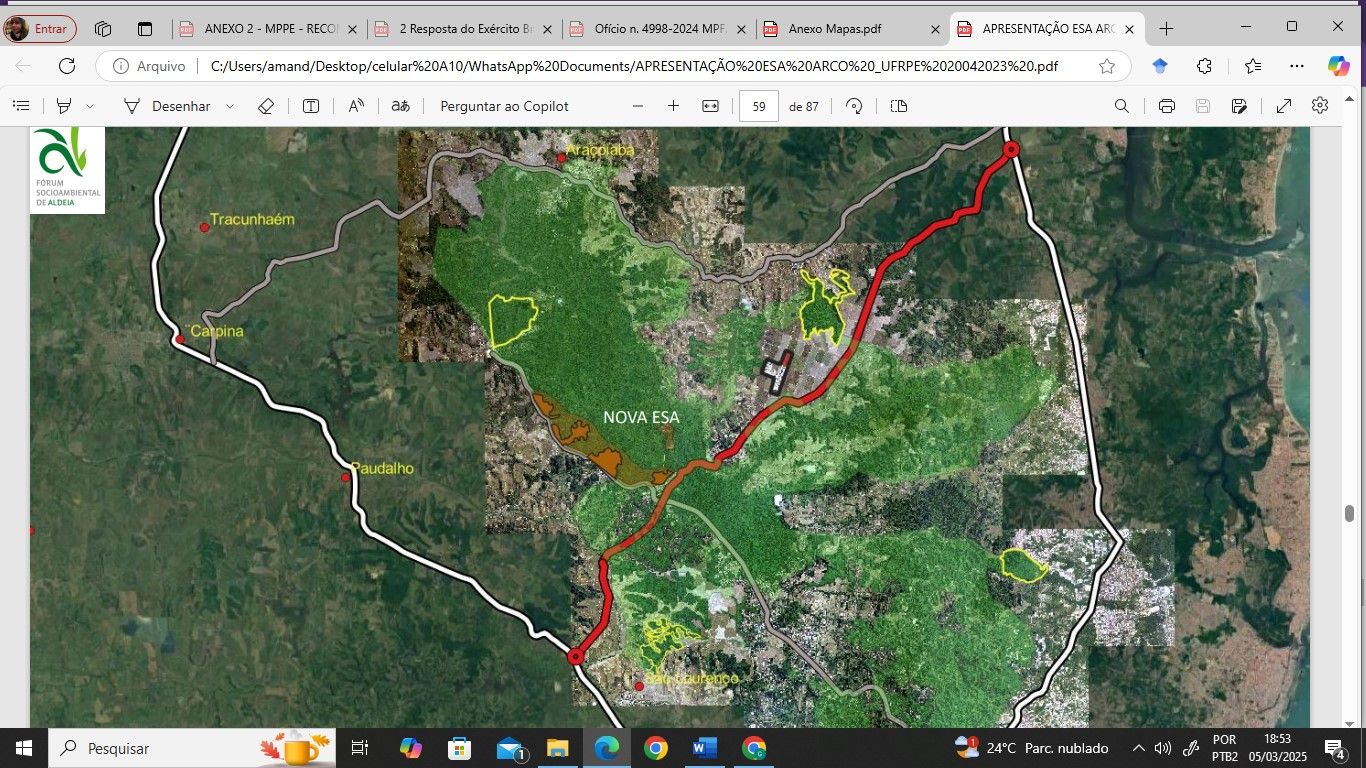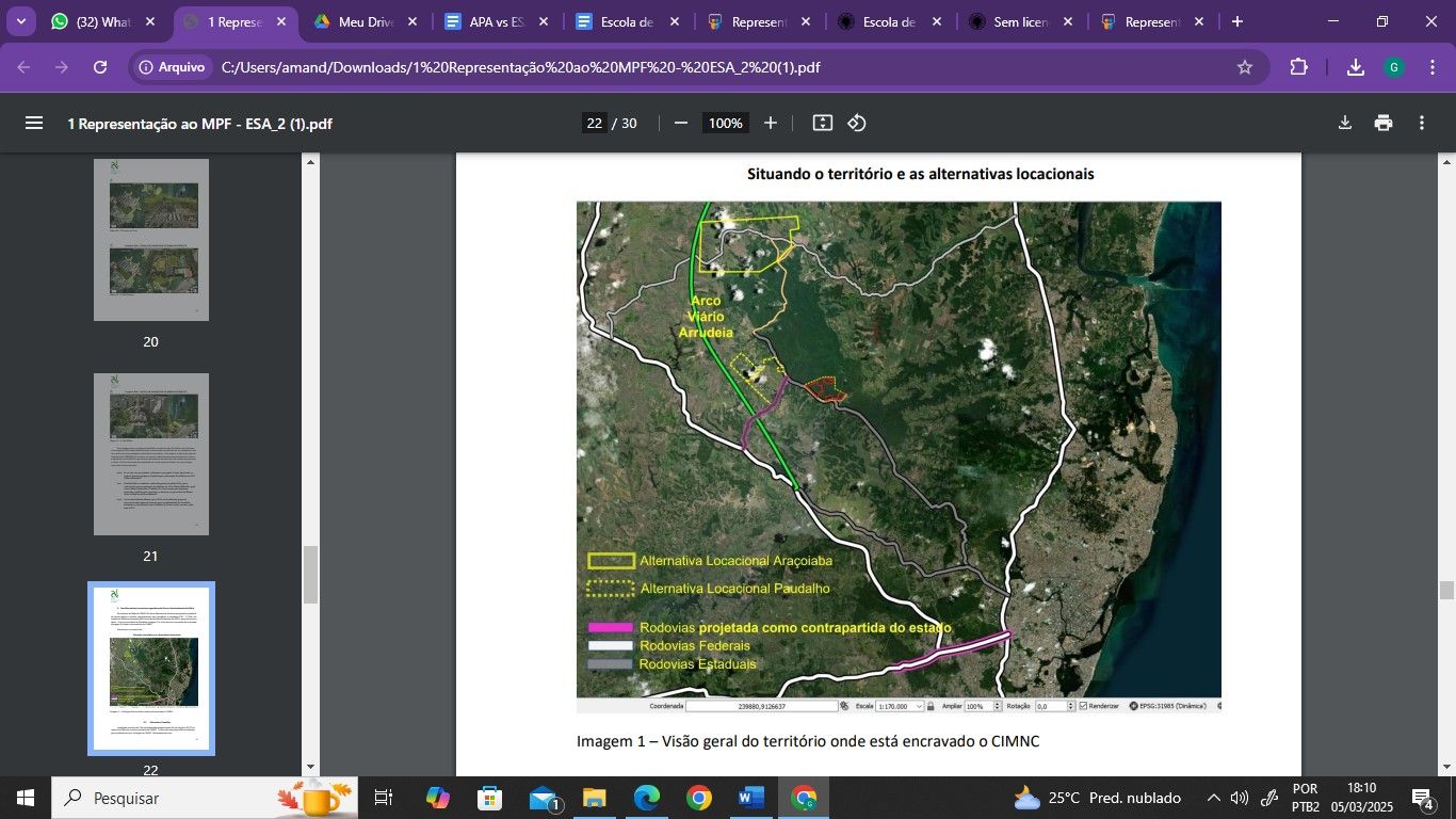 Ainda no mesmo mês, o Fórum Socioambiental de Aldeia recorre ao Ministério Público Federal, o ofício completo está disponível aqui. No ofício o Fórum aborda a questão em 3 capítulos: 1- Situando o território e os Impactos Ambientais; 2- Situando a escola de Sargentos do Exército; 3- Das alternativas locacionais sugeridas pelo Fórum Socioambiental de Aldeia. Desses vamos apenas abordar os capítulos 1 e 3, no capítulo 1: