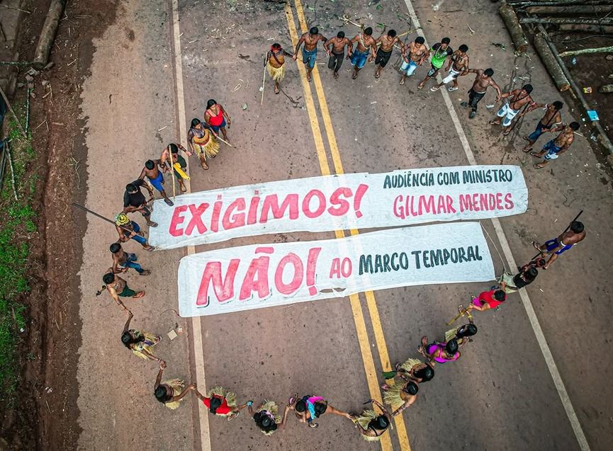 Desde o dia 25 de março, os Munduruku ocuparam estrategicamente o entroncamento entre as rodovias BR-163 e BR-230, na Transamazônica, município de Itaituba (PA), região do Tapajós. A ação durou até segunda-feira (07) e, ao longo dos quatorze dias de protesto, o movimento Munduruku Ipereğ Ayũ manteve três demandas centrais: o fim imediato da Lei 14.701/2023 (Marco Temporal), a extinção da mesa de conciliação no STF que discute o tema e uma audiência urgente com o ministro Gilmar Mendes. Uma das pautas foi atendida na segunda-feira (07) com a confirmação da audiência com Gilmar Mendes, marcada para o dia 15 de Abril, em Brasília.