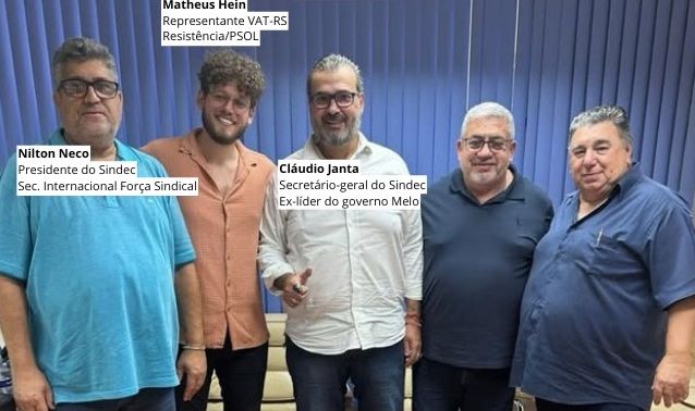 Na quinta-feira (18/03), o representante do Movimento Vida Além do Trabalho (VAT) no Rio Grande do Sul, Matheus Hein (militante da corrente Resistência, do PSOL), se reuniu com a direção do Sindicato dos Empregados do Comércio de Porto Alegre (Sindec-POA), responsável por firmar e defender a escala 10x1 na Companhia Zaffari. Segundo o site do Sindec, a discussão teve como objetivo firmar uma parceria na luta pela redução da jornada de trabalho. Além do presidente do sindicato, Nilton Neco, estava presente na reunião o ex-vereador Cláudio Janta (Solidariedade), que foi líder do governo Melo na Câmara de Vereadores em 2022, é secretário-geral do Sindec e diretor da Força Sindical.
