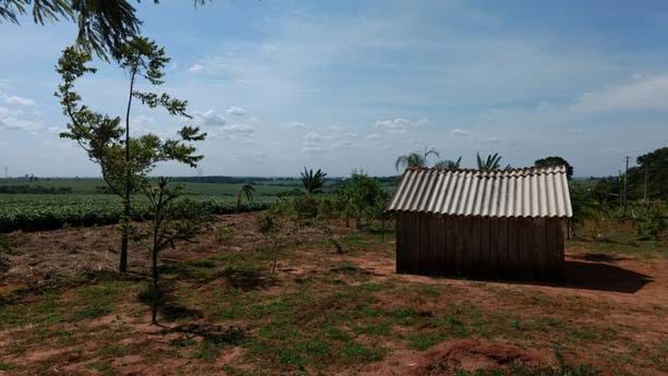Moradia em Tekoha Tatury ao lado de lavoura de soja (CGY, 2022).