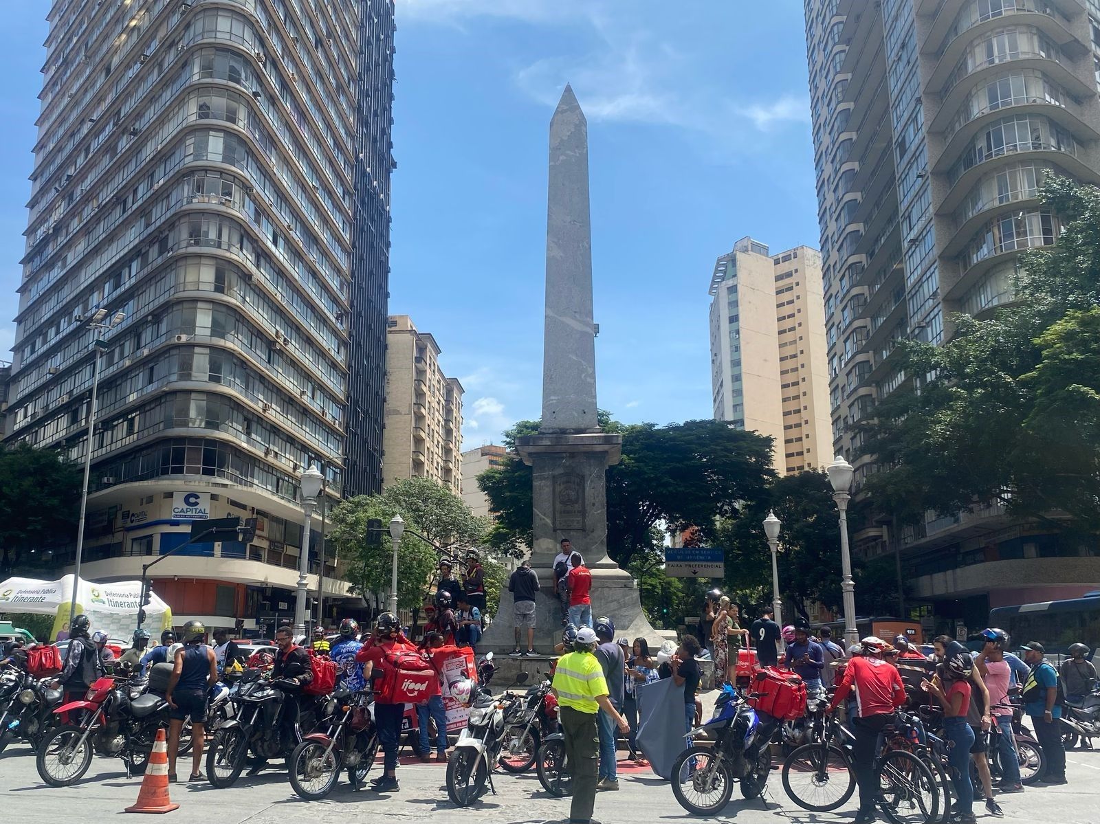 Trabalhadoras e trabalhadores de aplicativo organizando o Breque dos Apps em Belo Horizonte, no dia 31 de março de 2025. Foto: Jornal O Futuro.