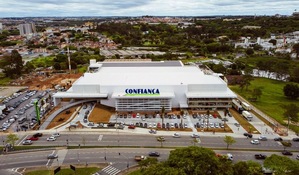 Mega loja da rede Confiança, com 27 mil metros quadrados, na cidade de Sorocaba (SP). Reprodução: Linkedin/Confiança Supermercados.