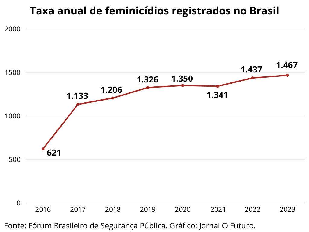 Esse aumento também foi acompanhado de uma alta generalizada de todos os tipos de violência de gênero, como estupros (6,5%), violência doméstica (9,8%), assédio e importunação sexual (28,5% e 48,7%, respectivamente), violência psicológica (33,8%), etc. Desde 2016, primeiro ano que o Fórum Brasileiro de Segurança Pública (FBSP) passou a registrar feminicídios em seus anuários, o crescimento foi de mais de 136%, numa escalada cujo registro só foi prejudicado em um único ano, pelas adversidades da pandemia. Para fins comparativos, considerou-se a metodologia proposta pelo FBSP.