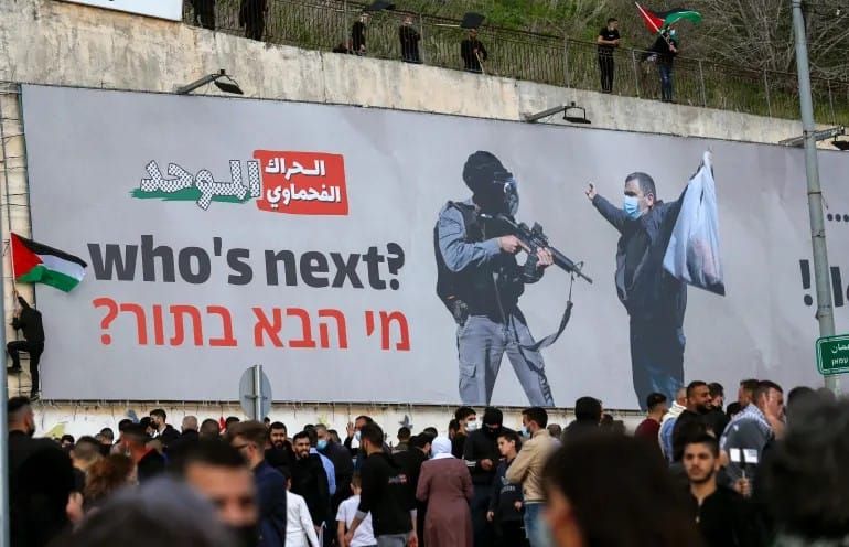 Outdoor em manifestação contra a guerra na cidade de Umm al-Fahm, 12 de março de 2024. Reprodução: Ahmad Gharabli / AFP