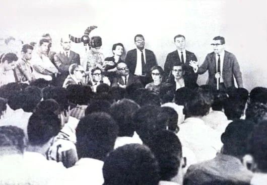 Coronel Jarbas Passarinho na Assembleia dos Trabalhadores em Contagem/MG em abril de 1968 - Reprodução/Foto: Arquivo Público do Estado de São Paulo/Fundo Última Hora