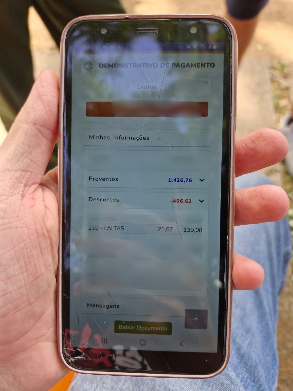 Registro do desconto de R$139,08 pela falta em um dia, com atestado médico negado. Foto: Acervo Jornal O Futuro