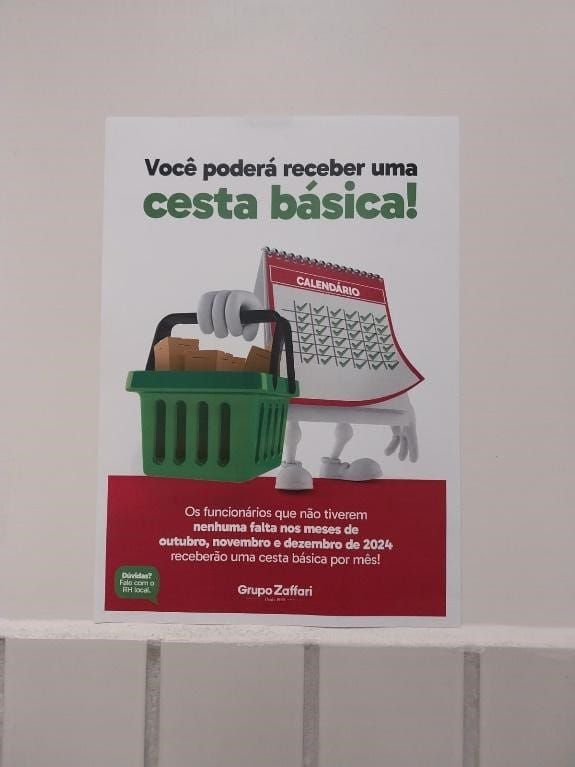 Recentemente, a Companhia Zaffari instituiu um programa de distribuição de cestas básicas para seus funcionários. Segundo um deles, essa medida seria para compensar os baixos salários e a insatisfação crescente, que leva a alta rotatividade na empresa. Porém, uma operadora de caixa denunciou as regras do benefício. “Eles falaram que a gente ia ganhar a cesta básica, só não pode faltar, nem botar atestado. Aí, eu fiquei ruim por causa da comida que eles nos servem no refeitório. Eu me humilhei pra ir embora, porque passei o dia todo com dor no estômago. Era um domingo de dobra e eles não queriam me liberar”. A operadora de caixa contou que quando a situação chegou ao limite, passou mal e decidiu ir ao médico. “Então, eles falaram: ‘tu perdeu a cesta básica’. Eles tão tirando nosso direito de ficar doente. É muita humilhação não poder ficar doente pra ganhar uma cesta básica”, desabafou.
