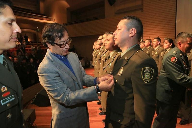 O presidente colombiano em condecoração da Polícia Nacional, em 2024. Reprodução: Gustavo Petro Urrego.