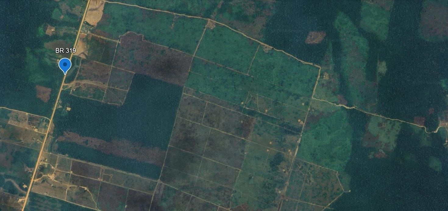 Áreas degradadas na BR319 entre o Seringal Realidade e a região Acará em Humaitá (AM).(Foto: Reprodução/Google Earth)