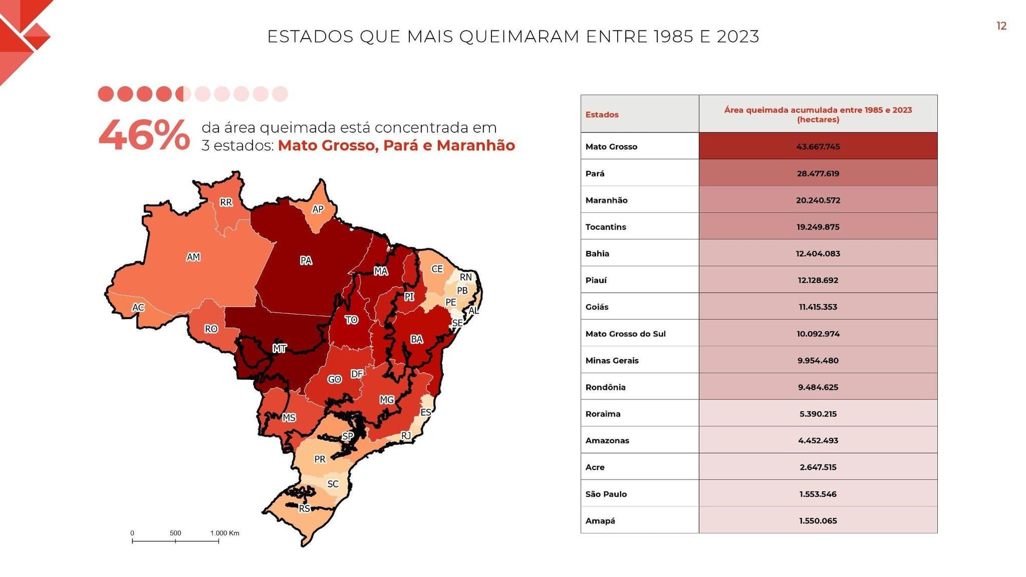 Figura 3: Estados que mais queimaram entre 1985 e 2023. Fonte: Coleção 3 MapBiomas Fogo.