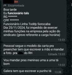 Com a organização dos trabalhadores e a deflagração da greve nesta segunda-feira, a PepsiCo iniciou uma ofensiva de movimentos contrários à mobilização. Em grupos com funcionários no WhatsApp, gestores e membros do Recursos Humanos (RH), enviaram mensagens de coerção, desincentivando à adesão à greve: