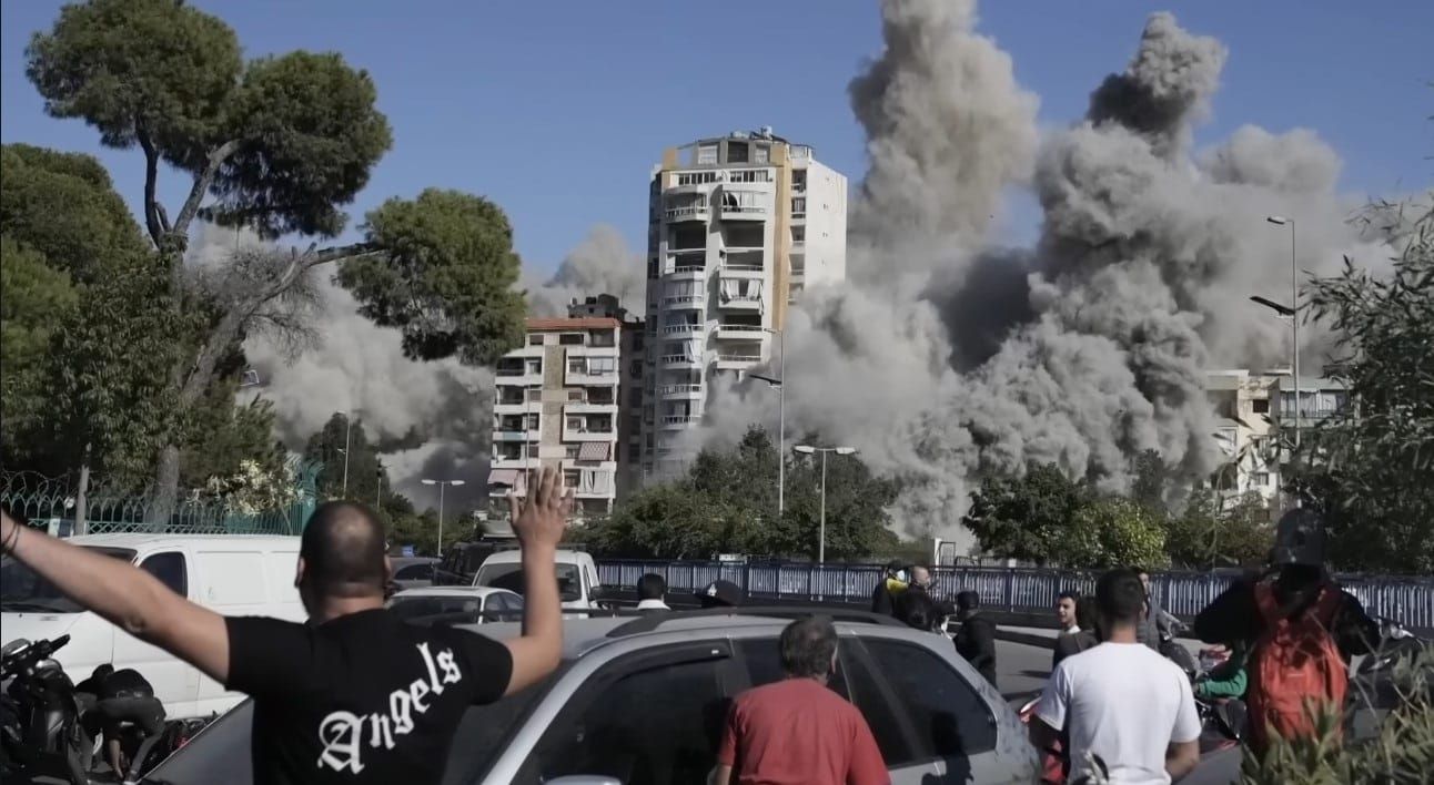 Vídeo feito por fotógrafo registrou o momento em que um prédio habitacional em Beirute é atingido por um míssil israelense, causando a morte de dezenas de civis e deixando centenas de feridos. Reprodução/Foto: Youtuve / NEWSCENTERMaine